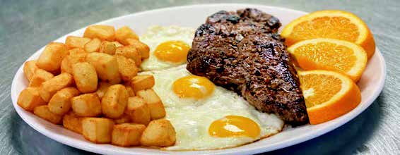 Two pancakes, or two French Toast, or half a waffle with choice of meat; Bacon, Ham, or Sausage 9.99